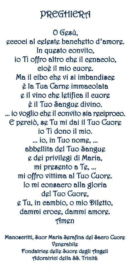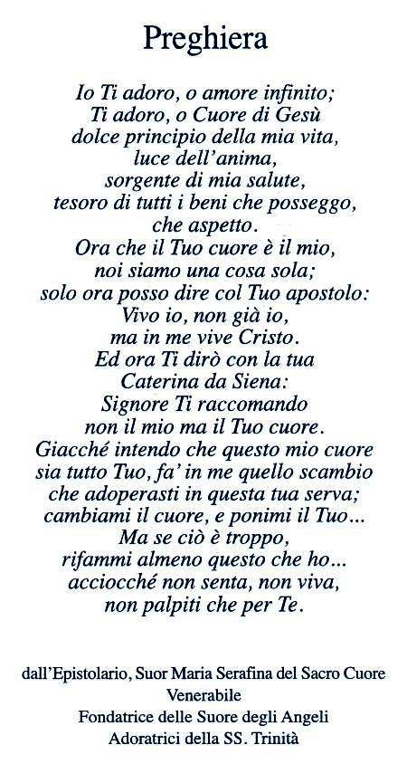 ripetere alle sue consorelle: “Come gli Angeli adorerete la